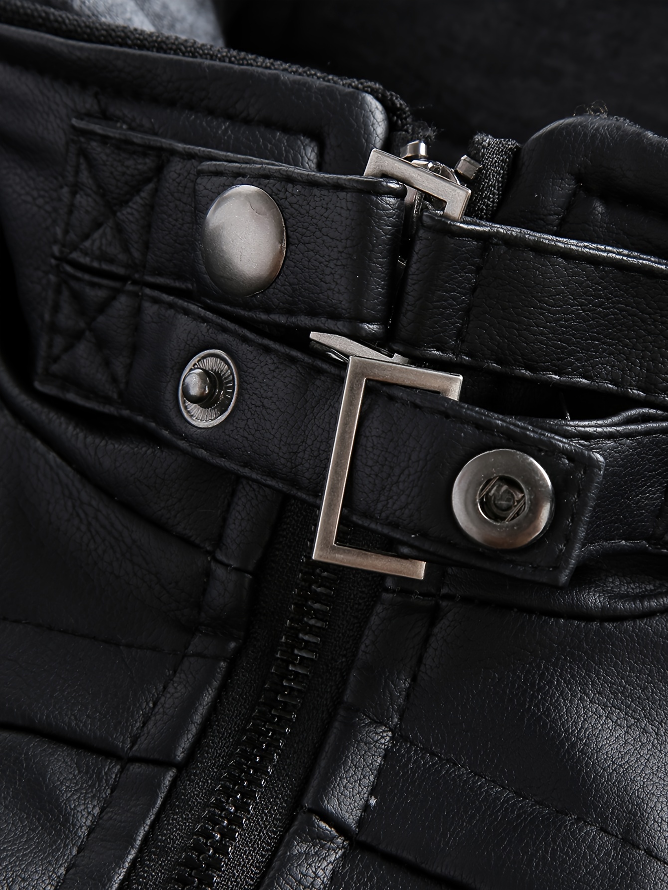 mens casual pu leather jacket chic zip up hooded biker jacket details 15