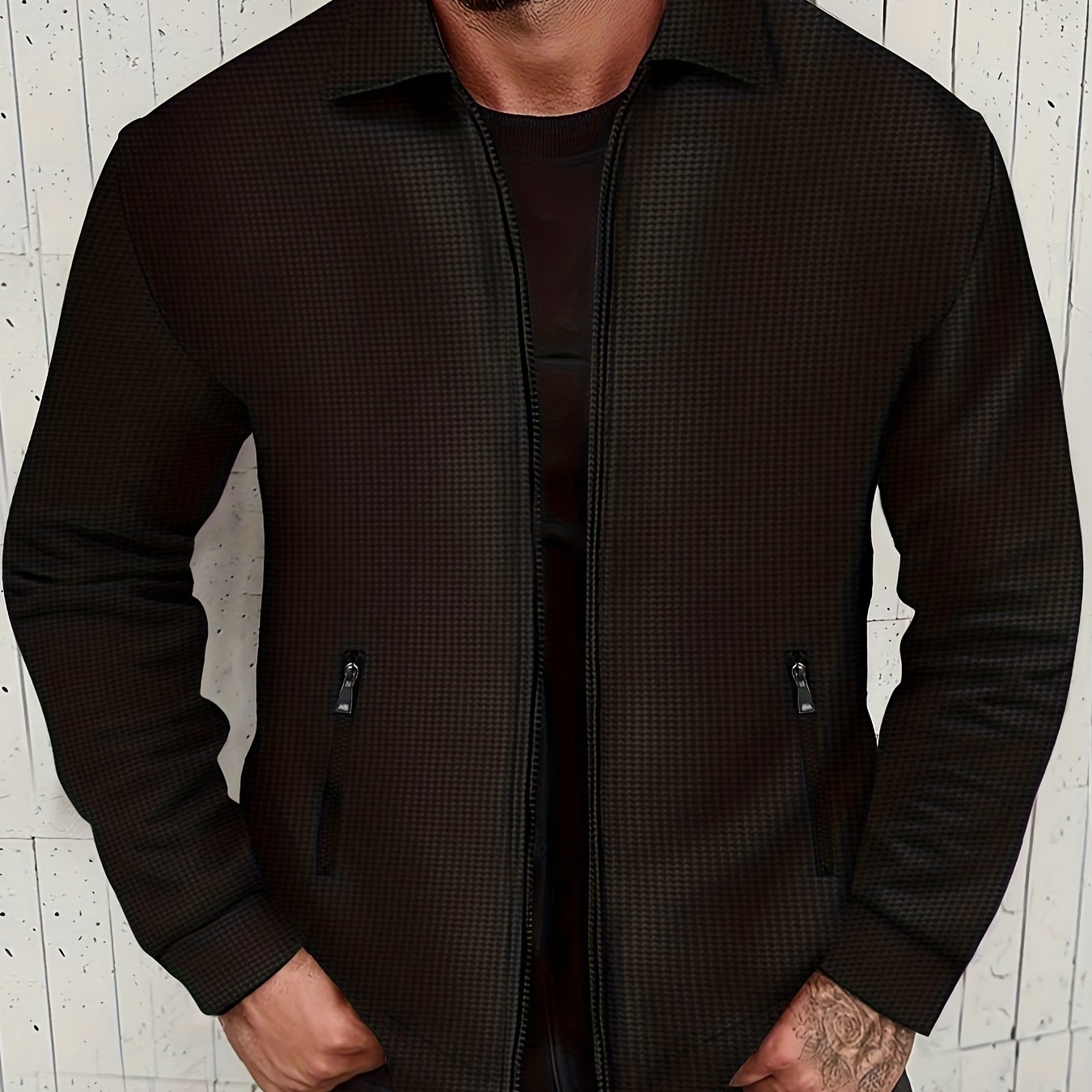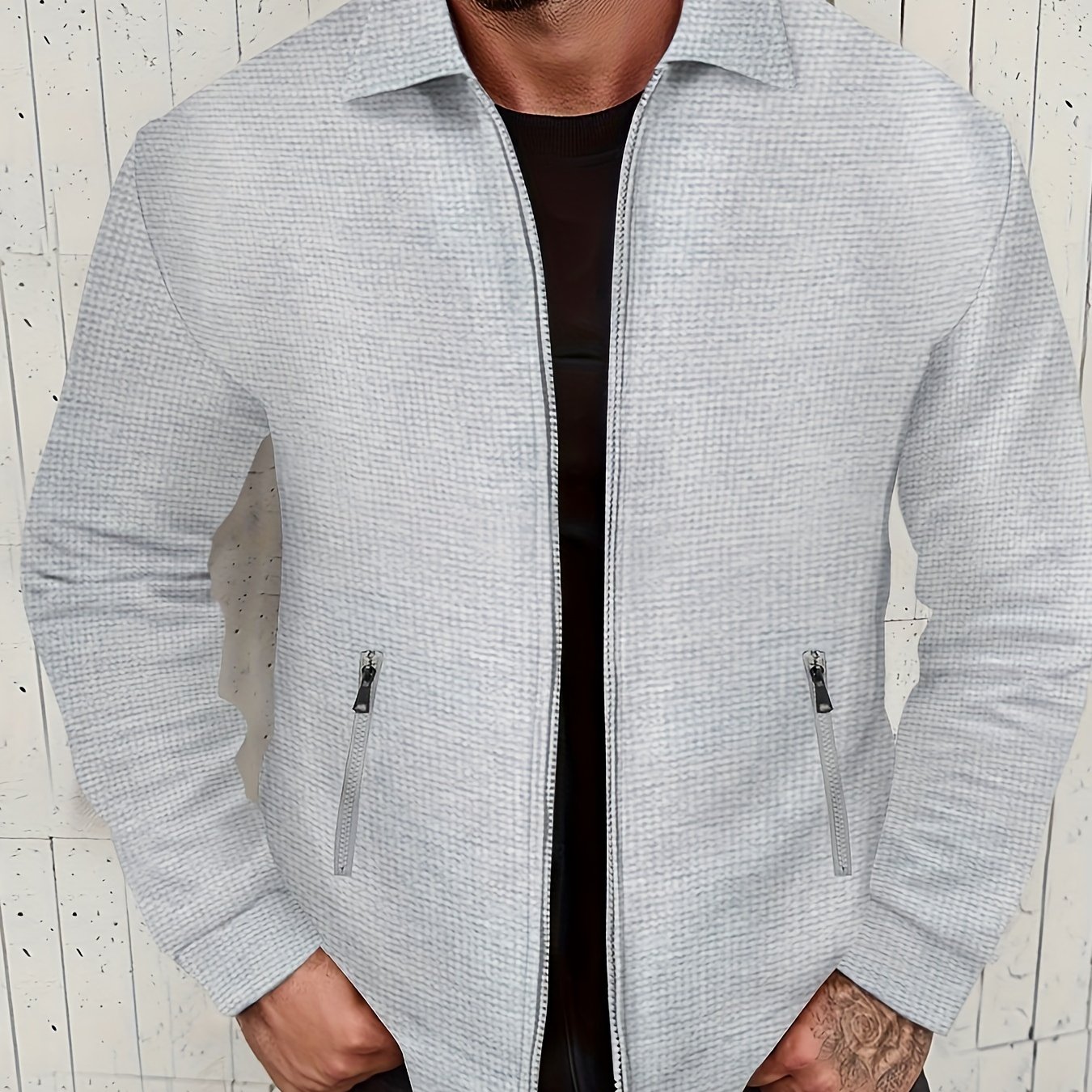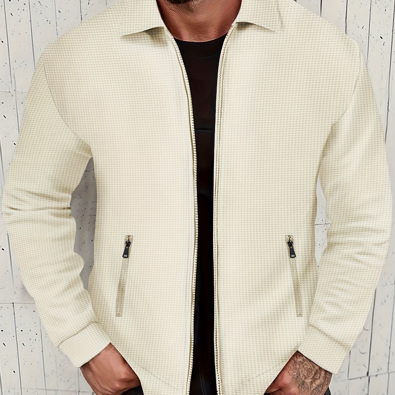 waffle pattern retro vintage jacket mens casual zip up jacket coat college hipster windbreaker for spring fall details 1