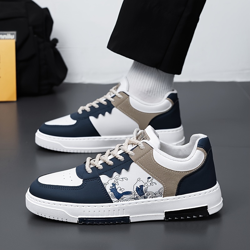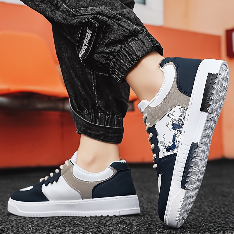 great Men’s Trendy Street Style Color Block Low Top Skateboard Shoes, Comfy Non Slip Casual Durable Lace Up Sneakers For Men’s Outdoor Activities