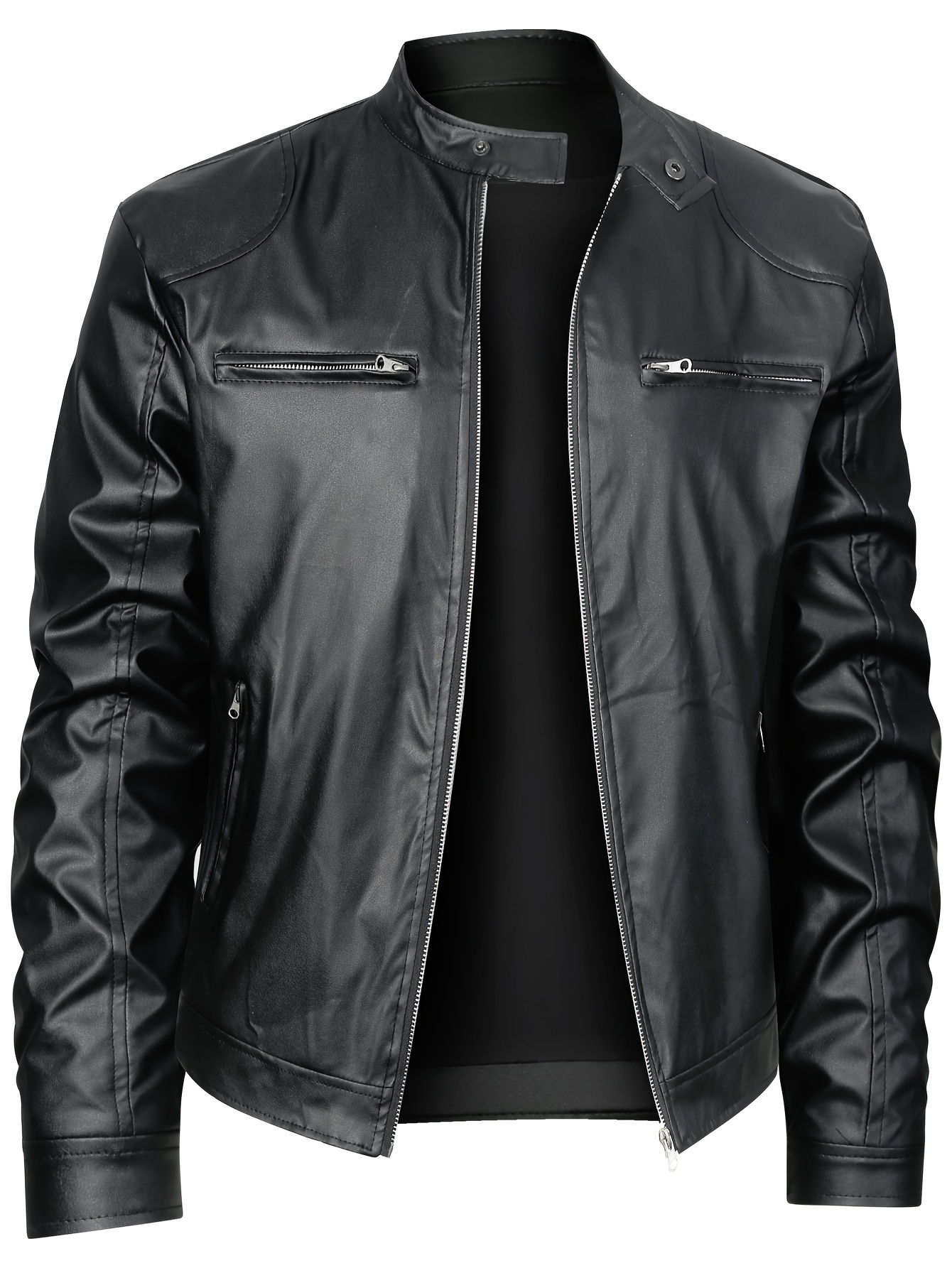 Men's PU Leather Motorcycle Jacket Coat with Zipper Cardigan and Stand Collar $207.99