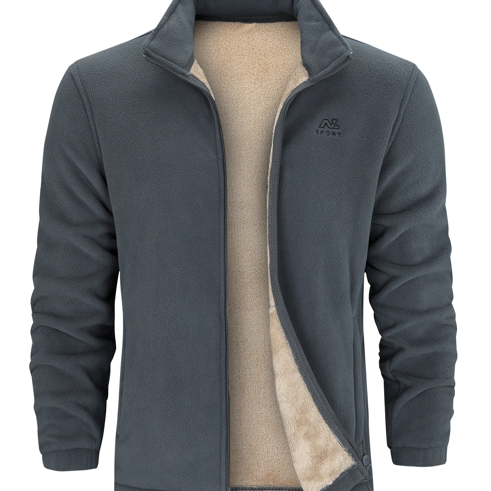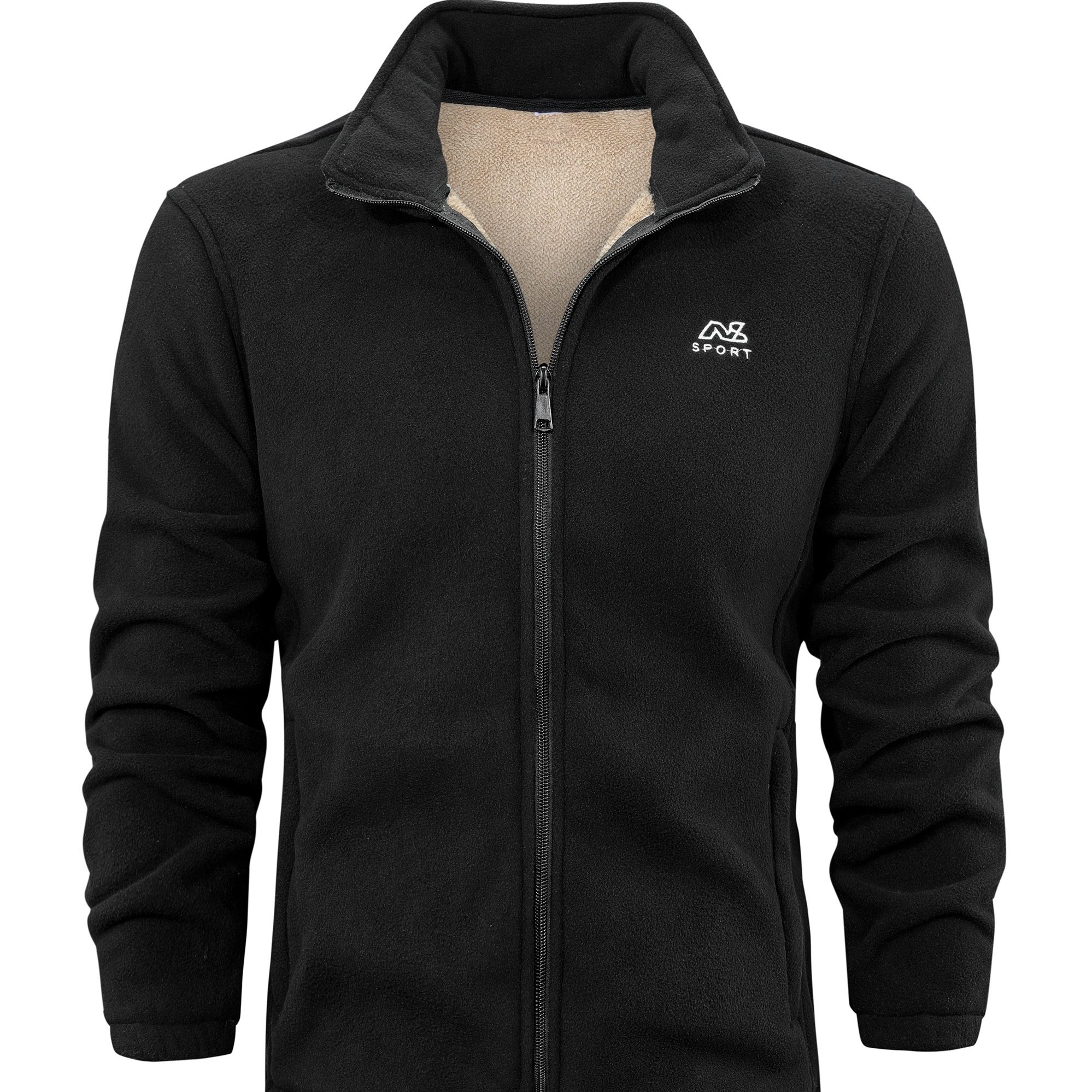 warm stand collar fleece jacket mens casual comfortable solid color zip up jacket coat for fall winter details 0