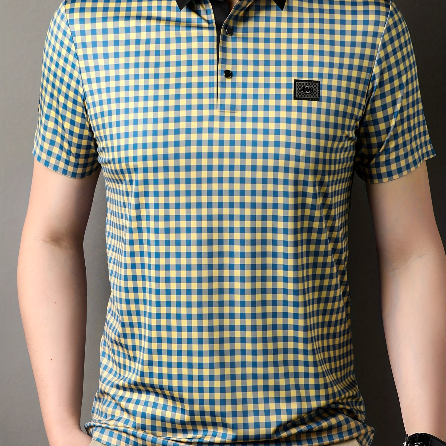 very good Retro Mature Checkered Men’s Color Block Short Sleeve Lapel Golf Shirt For Summer Outdoor – 100% recommend