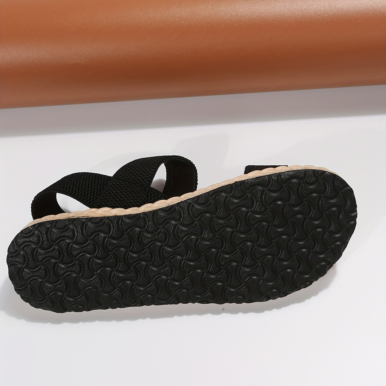 Home Women's Flat Sandals Women’s Elastic Ankle Strap Flat Sandals, Solid Color Open Toe Slip On Shoes, Outdoor Beach Faux Espadrille Sandals