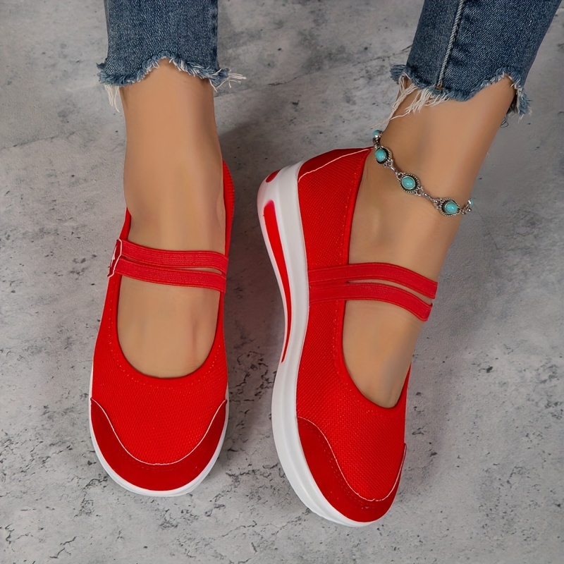 Home Women's Flat Sandals Women’s Platform Sports Shoes, Solid Color Knit Round Toe Anti-skid Low Top Shoes, Casual Walking Sneakers
